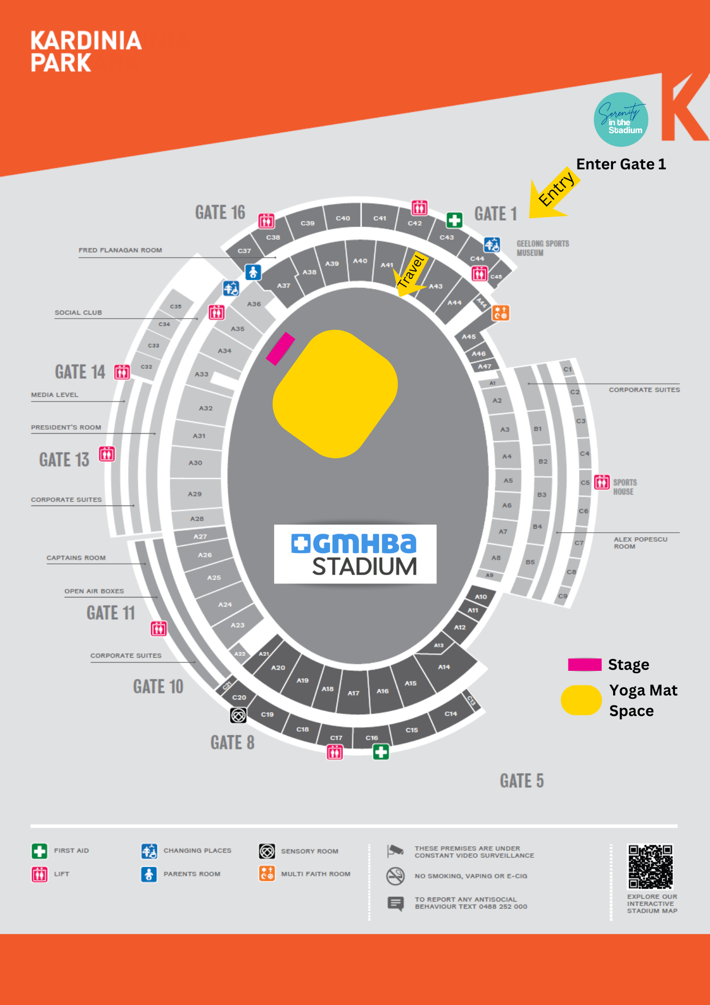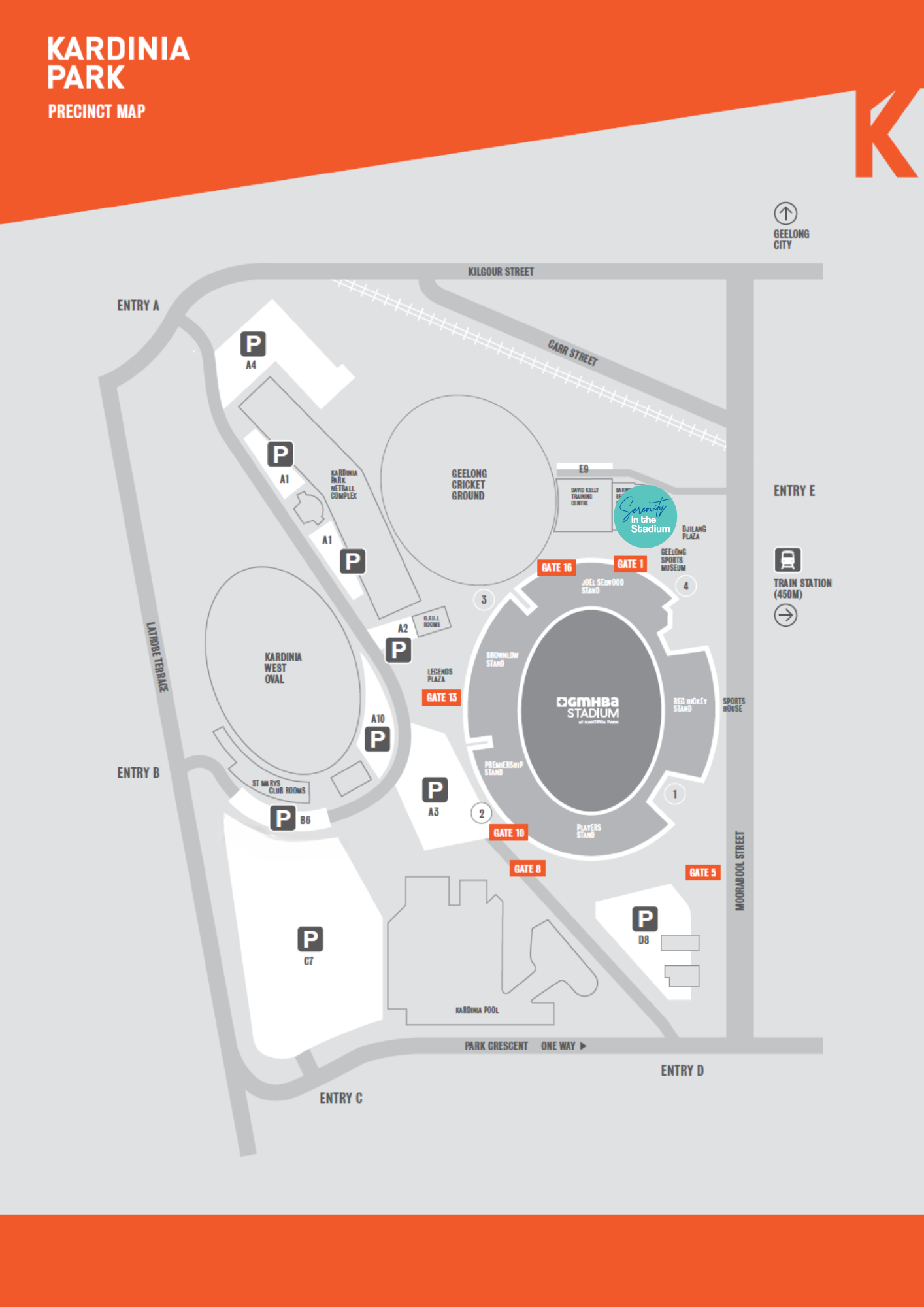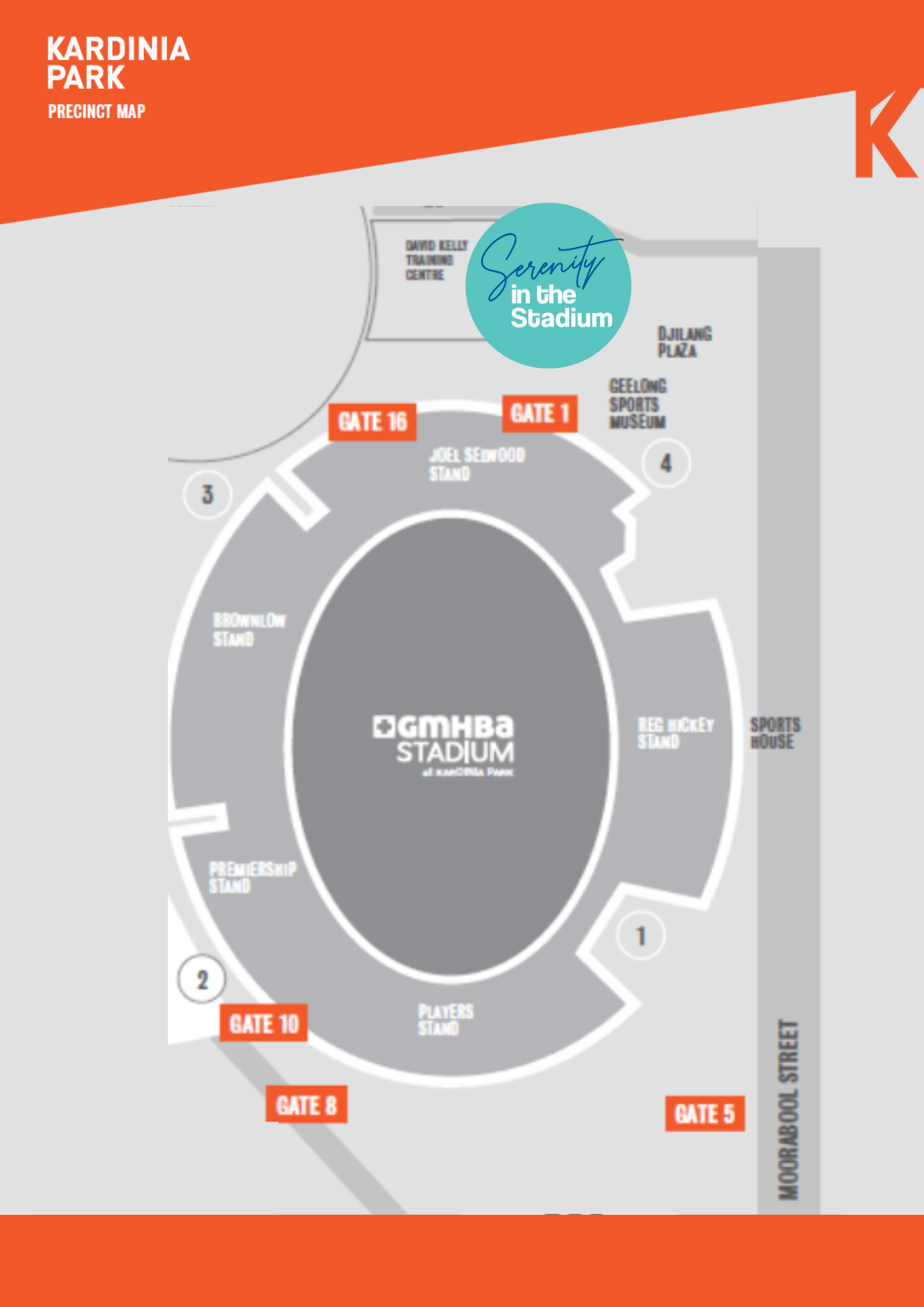 Entry for Serenity in the Stadium is via Gate 1 – Joel Selwood Stand.